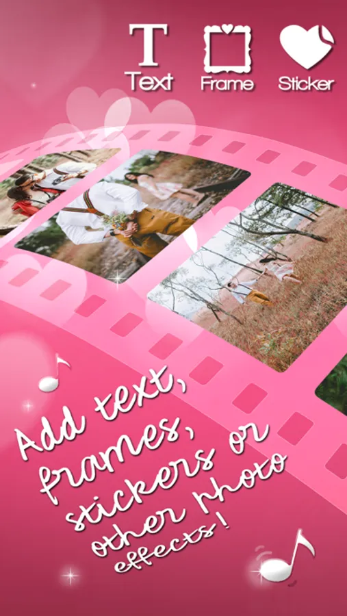 Valentine Slideshow with music is a romantic app for all girls and boys in love! Free download it and turn your photos into video slideshow format! You also get to add music! There are no better ideas for Saint Valentine's Day this year – our movie maker will sweep your beloved one off his/her feet! Add your lovely romantic selfies and with just a tap, you will have your very own mini-movie! All you have to add is choose background music or decorate the slides with stickers and filters! And the best part is – you don't have to celebrate love only on St Valentine's - use this video editor for wedding or birthday celebrations!
