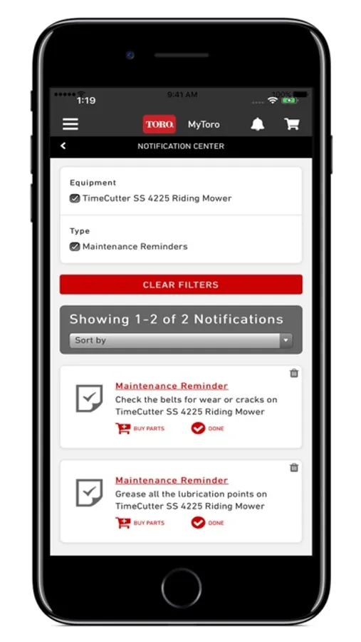 • MyToro recommends maintenance kits complete with everything you need for a specific maintenance job