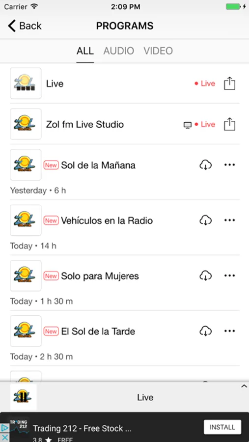 Programas grabados (podcasts) - que se pueden escuchar en línea o fuera de línea (después de descargarlos) sin el uso de datos.
