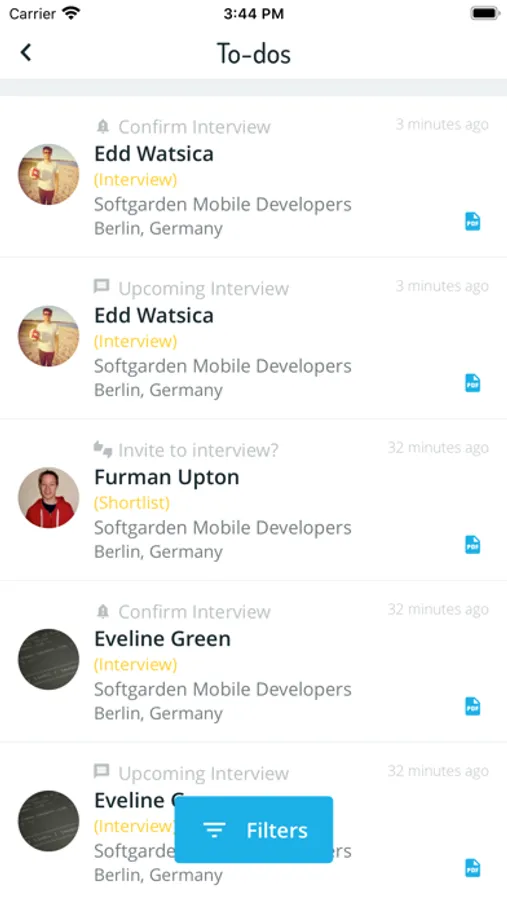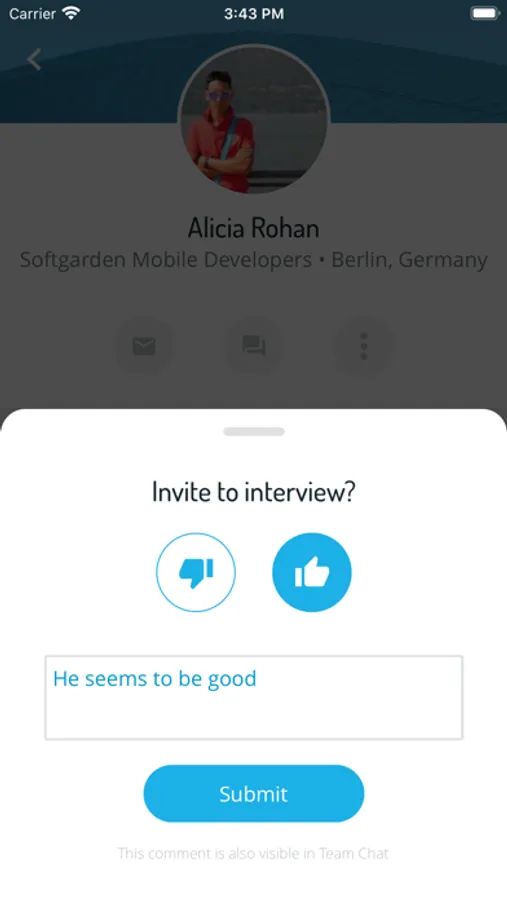 Vote applicants: Using thumb voting you can let your colleagues know whether you would want to see the applicant in an interview or not.