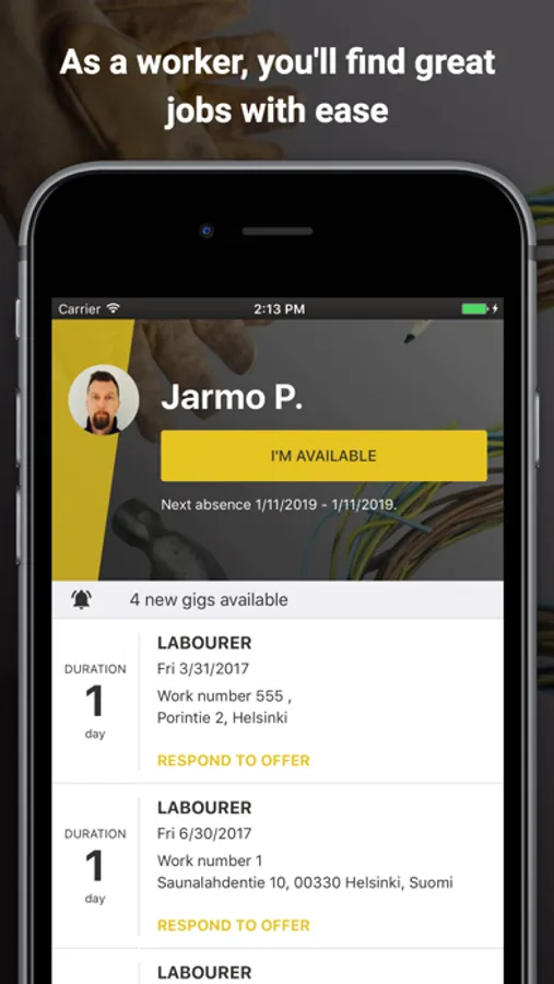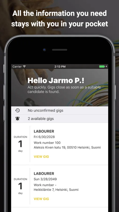 • Browse and apply for open gig jobs and longer-term opportunities across various industries.