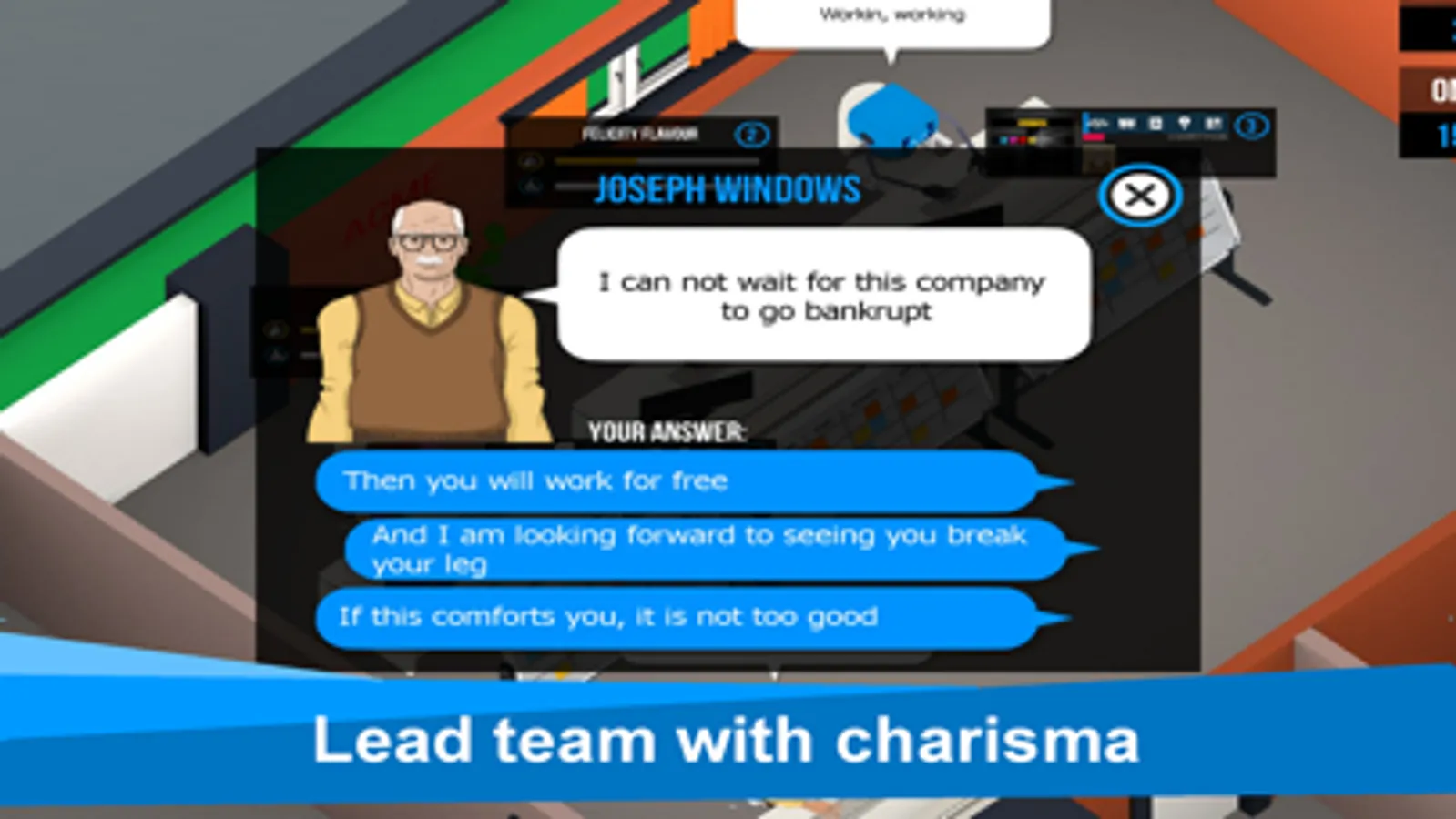 Train your employees, pay them bonuses, equip the office with dozens of useful items such as a billiard table and coffee machine.