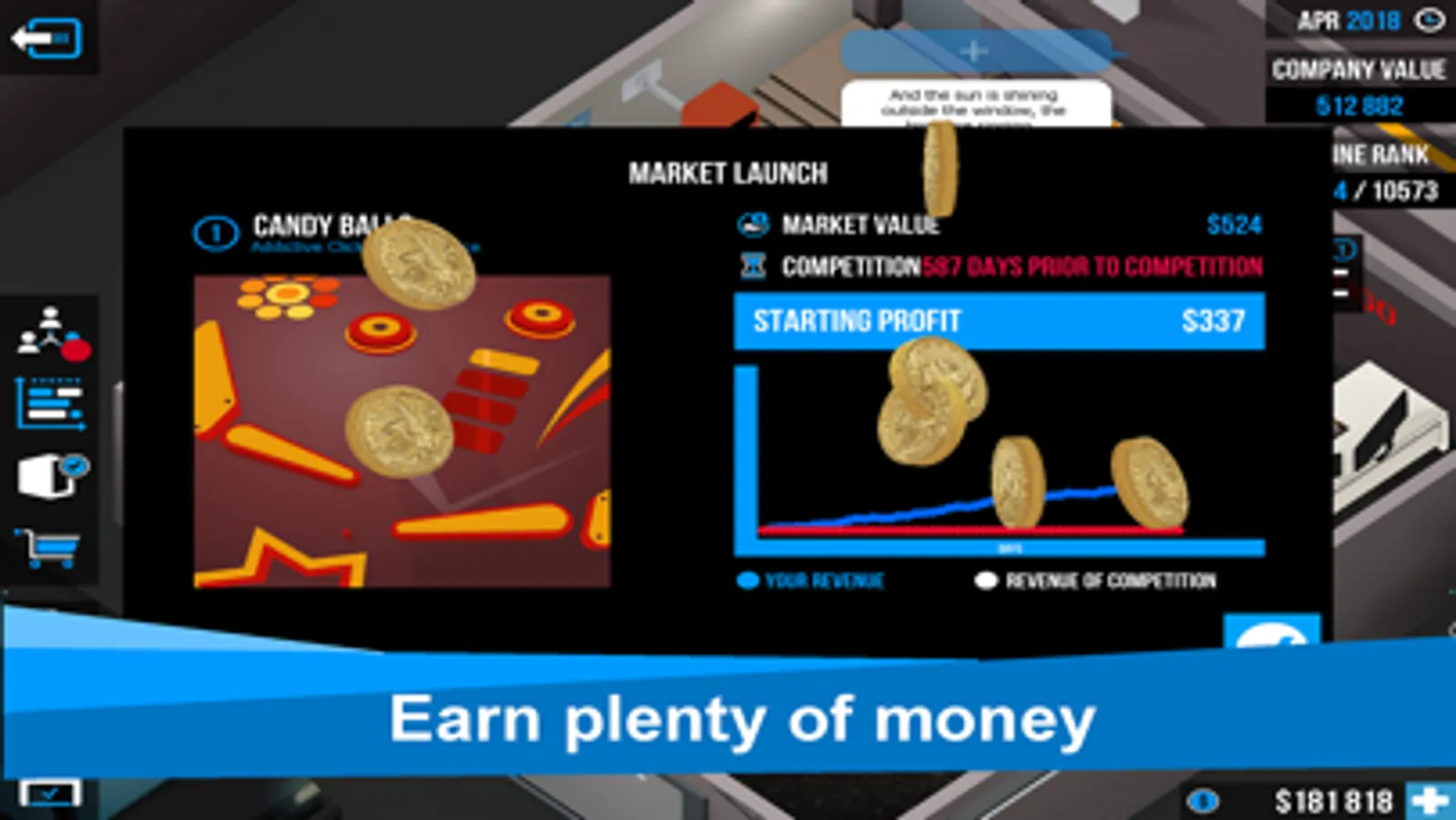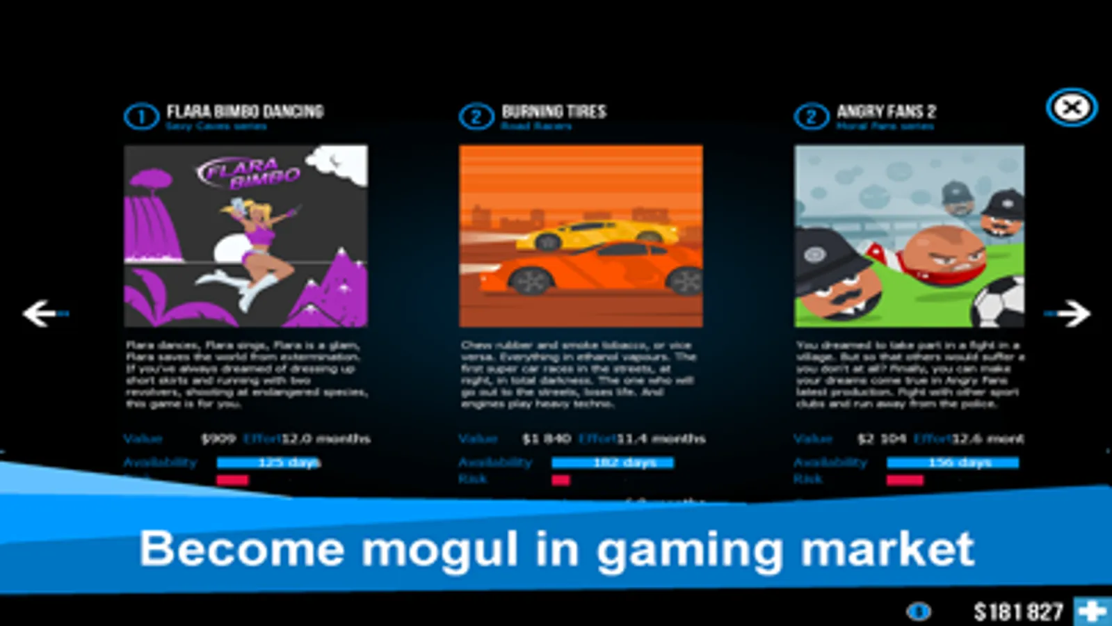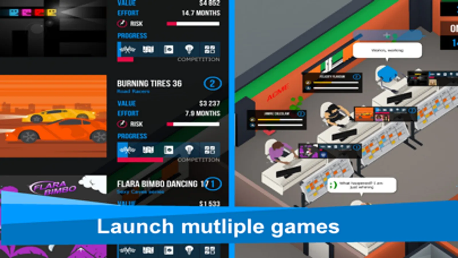 Employ employees, carry out dozens of projects and earn money on famous mobile games such as Flara Bimbo, Angry Fans or politically incorrect Race of Races. Pick right games and stay ahead of your competition to win the market. Think strategically, do not tap, like in real business.