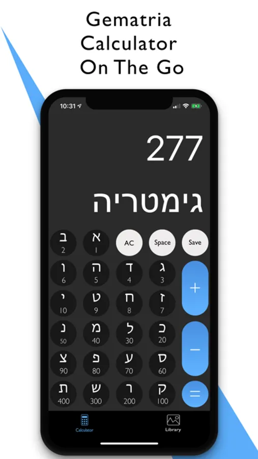 The Gematria Calc is a calculator that helps you derive the value of Hebrew letters and or whole words. It's simplistic and dynamic features allow you to compute both simple and complicated calculations of both individual letters and long words with ease and on-the-go!