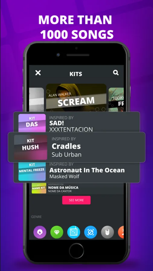 The app has more than 1000 DJ kits available, each one inspired by a famous song. Every week you can get new tracks, beats and loops in many music styles: