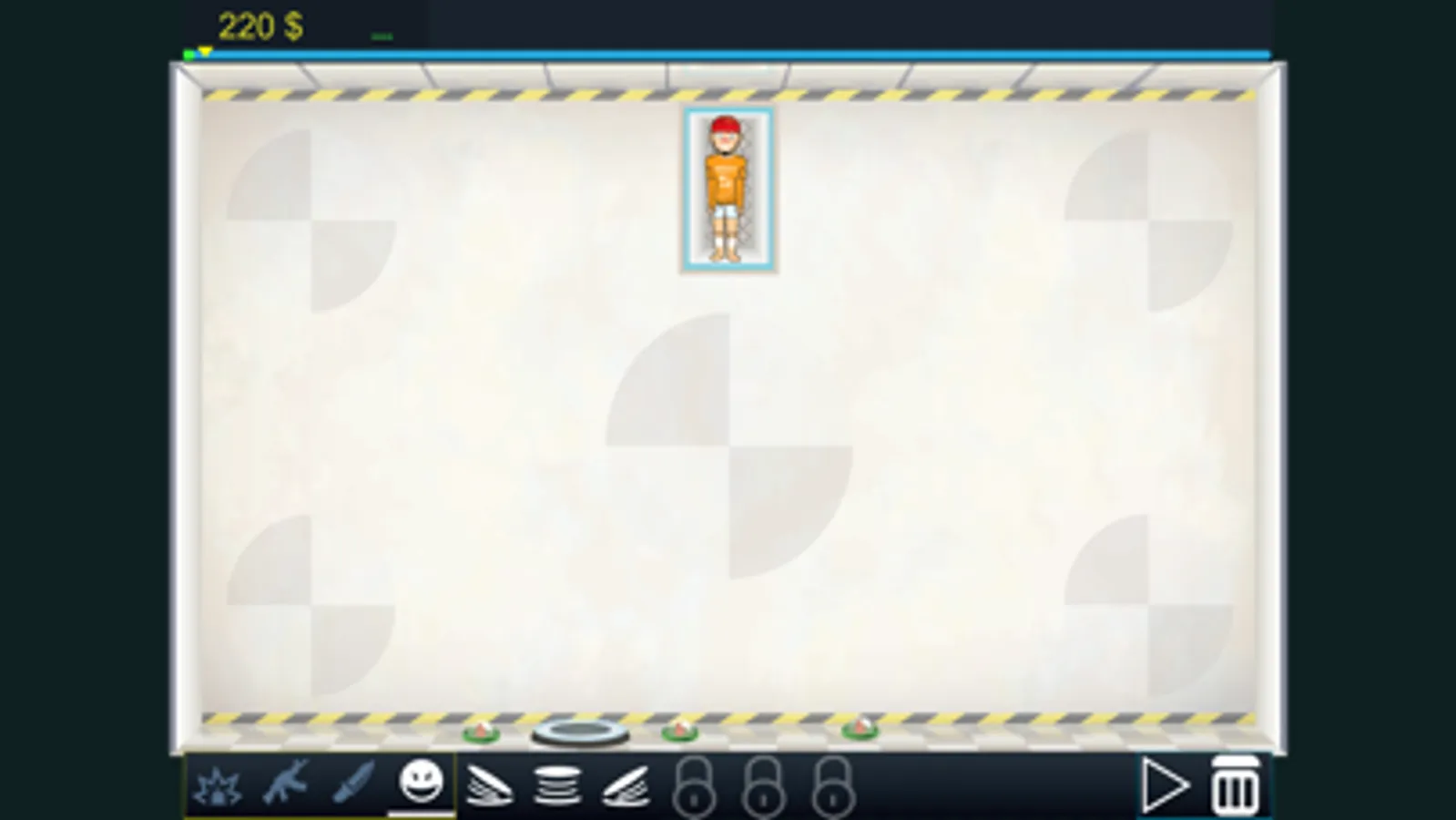 Ready to experiment with weapons and explosives? Crazy room - this is an unusual action game in which you need to test different weapons on a dummy crash test. Destroy the dummy and unlock new items. Big arsenal of weapons is under your control your job is test them all on ragdoll test subjects.