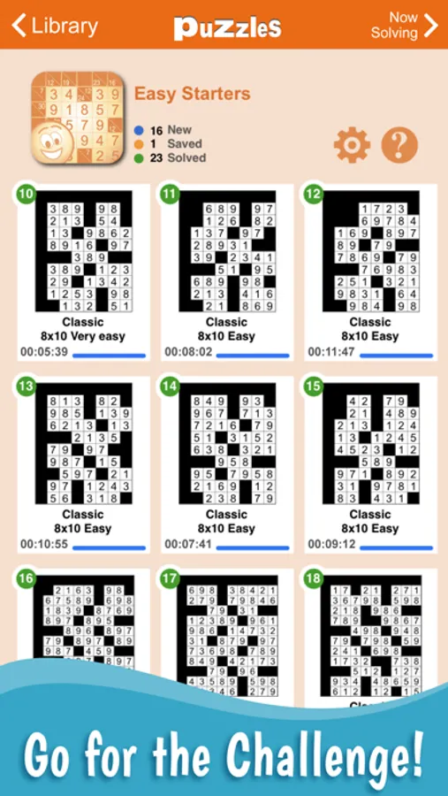 To help see the puzzle progress, graphic previews in the puzzle list show the progress of all puzzles in a volume as they are being solved. A Gallery view option provides these previews in a larger format.