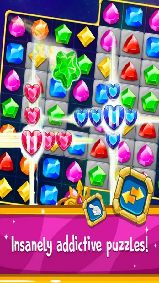 1. Move rows and columns up, down, left or right to match 3 or more same jewels