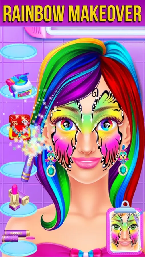 Level 1 : Rainbow makeover salon!! Put on make-up and hair coloring!