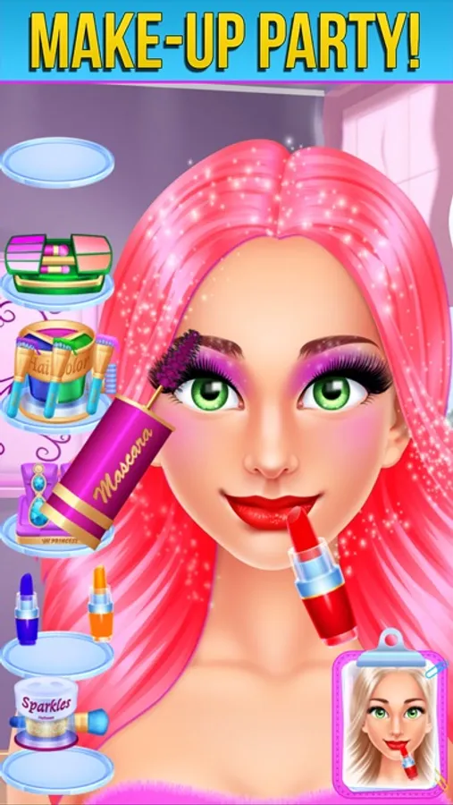 Level 2 : Make-up with fun color lipsticks, hair coloring, powder, eye-shadow and more! Look your best!