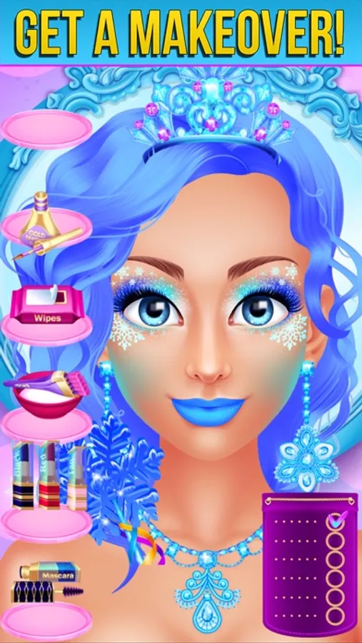 *Level 6 : Glam Ice princess hair style makeover party! Listen to music, fan the butterflies, brush hair and more!