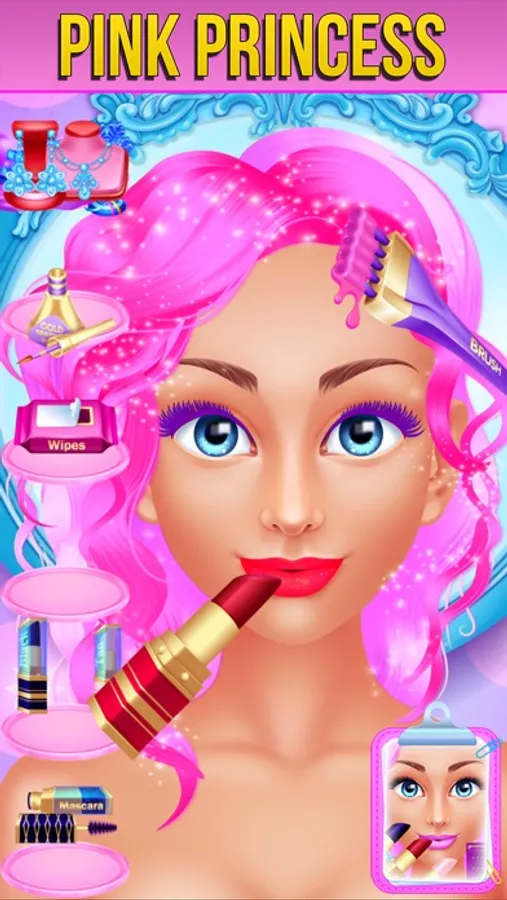 Level 4 : Princess hair-coloring and makeover! Transform from an Ice Princess to a Pink Princess.