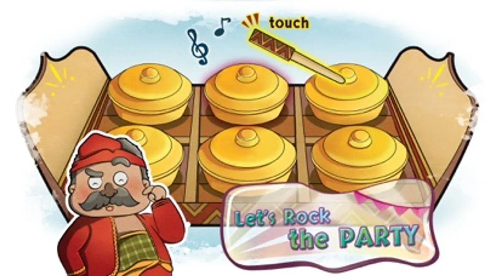 Help Pak Lebai to open an invitation, sail to the Headwaters Party and the River Mouth Party, playing musical instruments, and sing an enticing song.