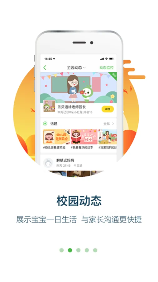 【家长】为家长提供:家园互动、家园沟通、安全监控等信息化服务、满足家长随时随地关注孩子安全、健康、成长以等方面的需要,实现家园共育;