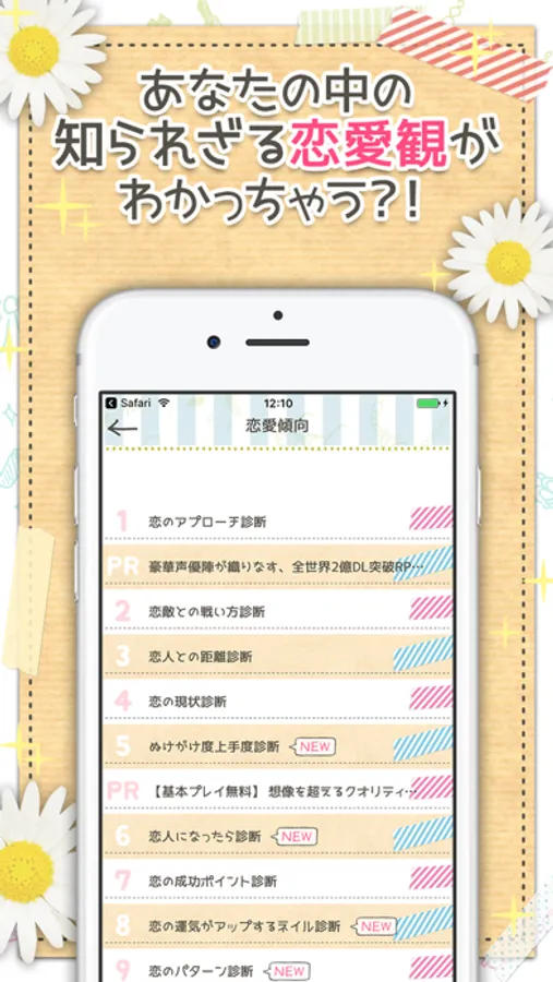 このアプリには、あなたがまだ知らない恋愛に対する考えを全部丸裸にしちゃう恋愛の心理テストがたくさん入っています!!