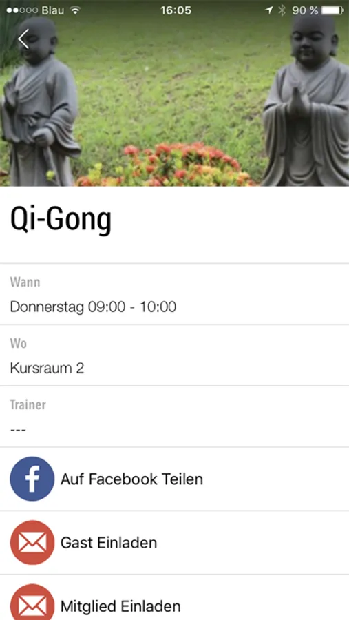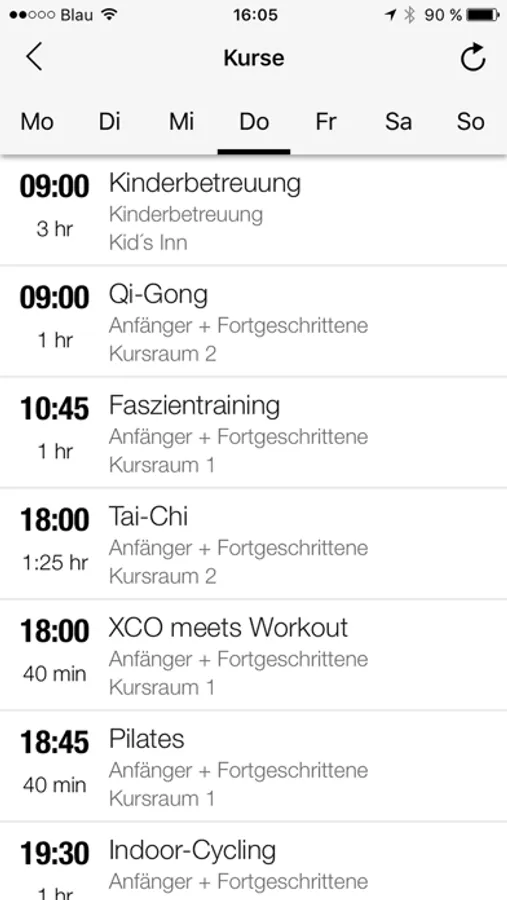Direkter und aktueller Zugriff auf den Kursplan von überall: Für jeden Kurs kannst Du Details wie Zeit, Kursbeschreibung, Raum und Merkmale wie z.B. den Schwierigkeitsgrad einsehen.