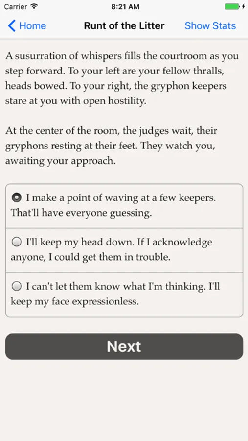 The gryphon keepers hold all the power in the Empire of Vaengrea. They make the laws, patrol the borders, and only give gryphon eggs to their chosen heirs. As a poor stable hand, a "thrall," you know you'll never have a chance to prove yourself.
