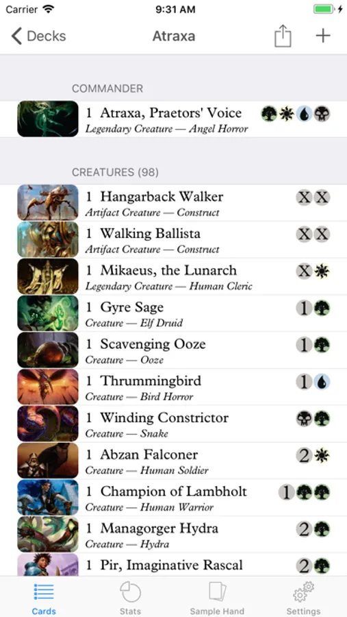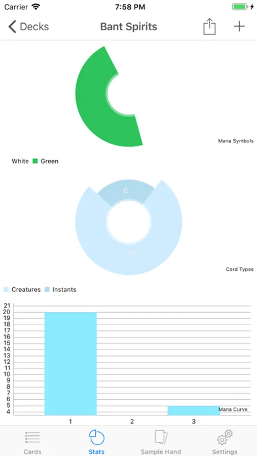 Check out statistics on your deck by its cards' colors, types, and cost.