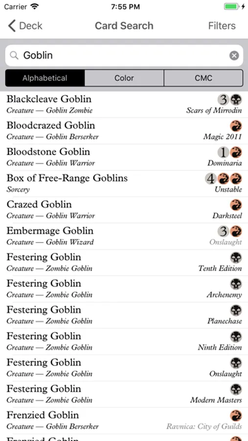 View details on any card and search by name, rules text, type, color, cost, set, format, and more.