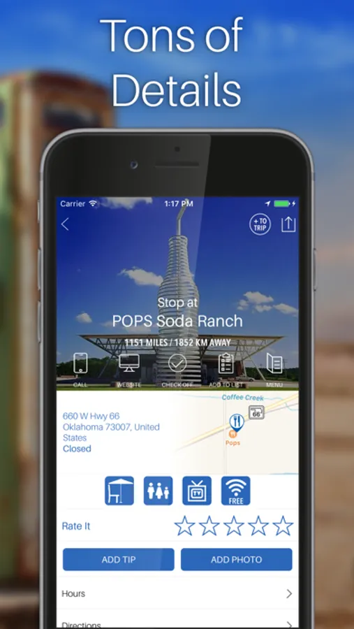 The app uses advanced technology to guide users to popular destinations like the lowest, highest, hottest, deepest and oldest parts of the United States. And then there are the ghost towns, living towns, ski resorts, film locations and more! Travelers have the opportunity to plan a trip, either on site or before their visit. The "Things to Do" option allows visitors to review all of the points of interest and add items to a "Want to Do" list. App users can then review their list when they arrive, and check off selected items when finished. Users can also add personal feedback and images to share with others via social media.