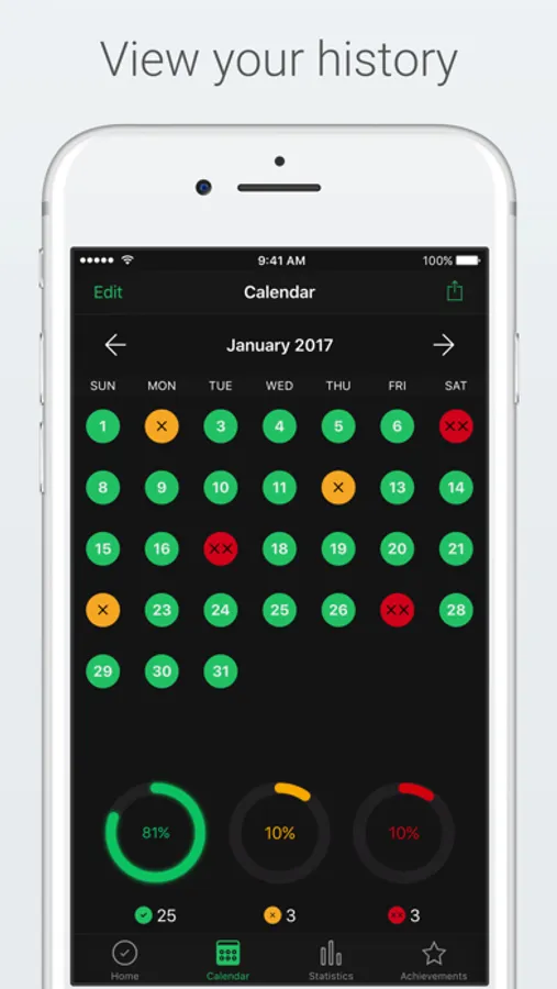 + Minimal interaction: Log your day directly from the reminder notification or using force touch on app icon