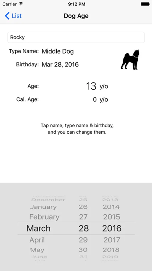 The necessary information is the birthday and the type of dog. Small dog, medium dog or large dog.