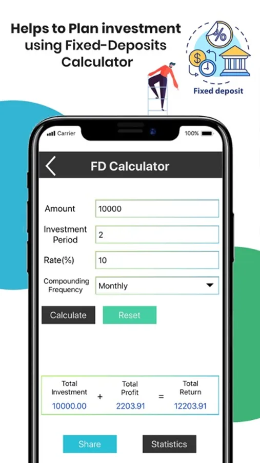 Calculate your Home, Car or personal Loan Emi with ease . Find the accurate amount you need to pay for your Loan. Compare different loan scenarios side-by-side. Helps to Plan investment using Fixed-Deposits Calculator