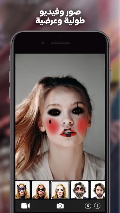 غير وجهك و البس اقنعة مذهلة في الفيديو من خلال اضافة فلاتر مختلفة! تحول الى نمرر او وحش او غير وجهك. سجل الفيديو و شاركه مع اصدقائك و عائلتك.
