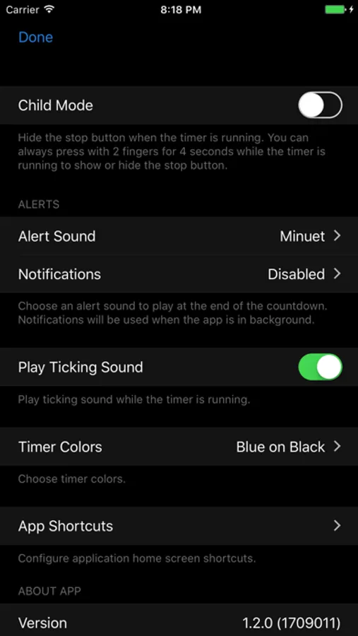 * Child Mode: hide the stop button when the timer is running. You can always press with 2 fingers for 4 seconds while the timer is running to show or hide the stop button.