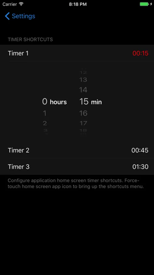 * Custom 3D Touch shortcut menus (on devices with 3D Touch support). Customize up to 3 different shortcuts with most used timers for a quick access.