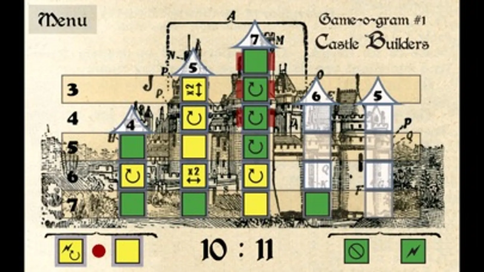 The king has ordered two builders to build a new castle for him. You are one of them. "The award you will be given will be in proportion to the quality of your work", the king said. "The quality of your work", you think. He doesn’t care about the quality, he only cares for what he can see with his eye... You will have to build the top of the towers, for that is where the king will look first. And if you can show the king how much you have built, you will surely be given an extra award.