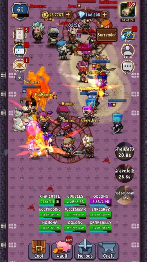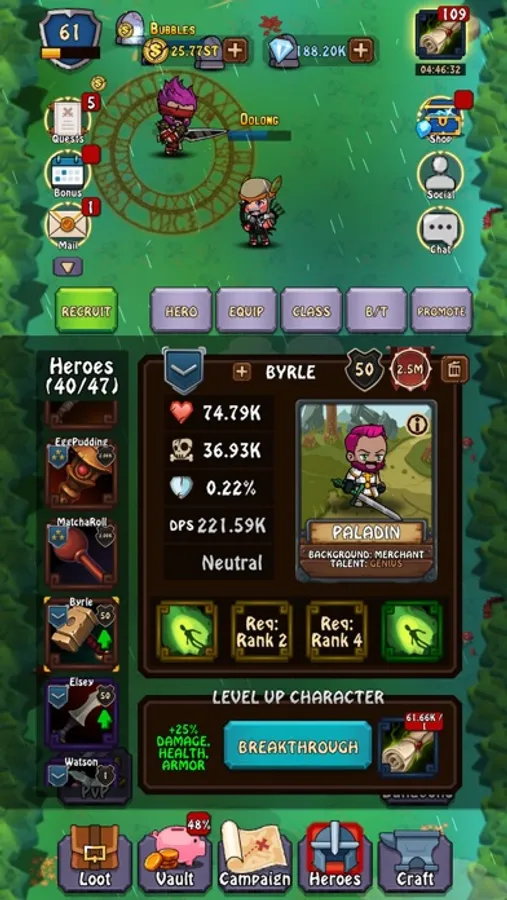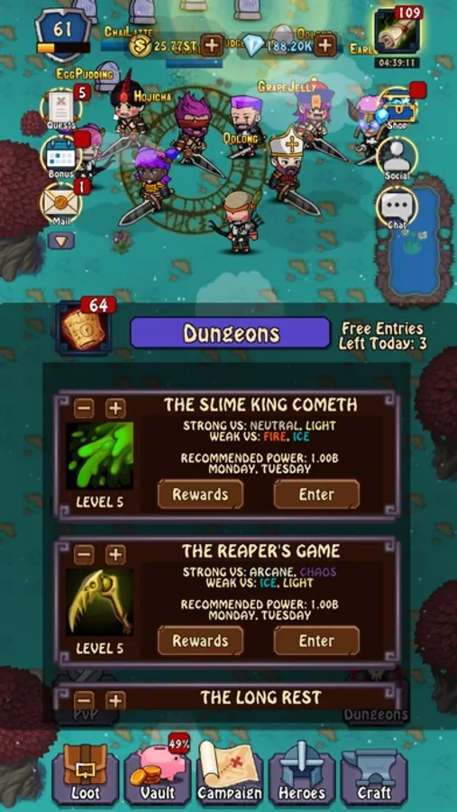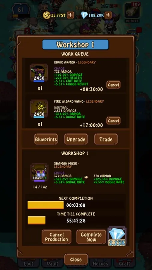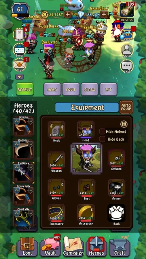 Collect components from battle to craft and upgrade items for your heroes! Efficiently craft while offline to maximise profit and fun!