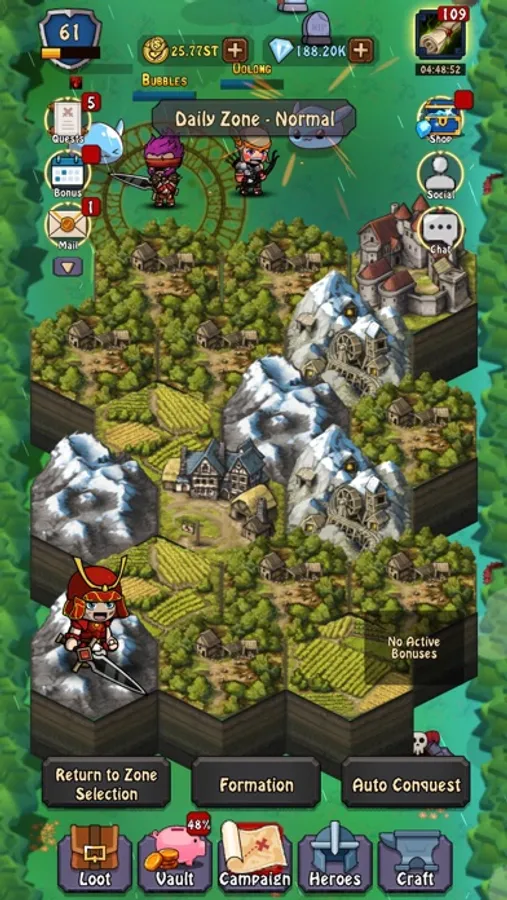 Setup your hero formation and set them loose to clear stages automagically - earning gold, equipment and items!
