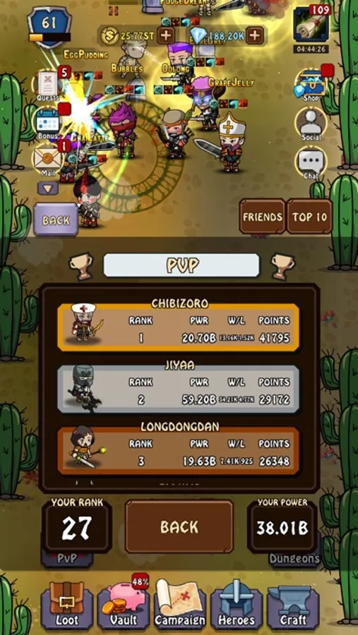 Clear stages and defeat players while you are online to increase the amount of gold earned while offline!