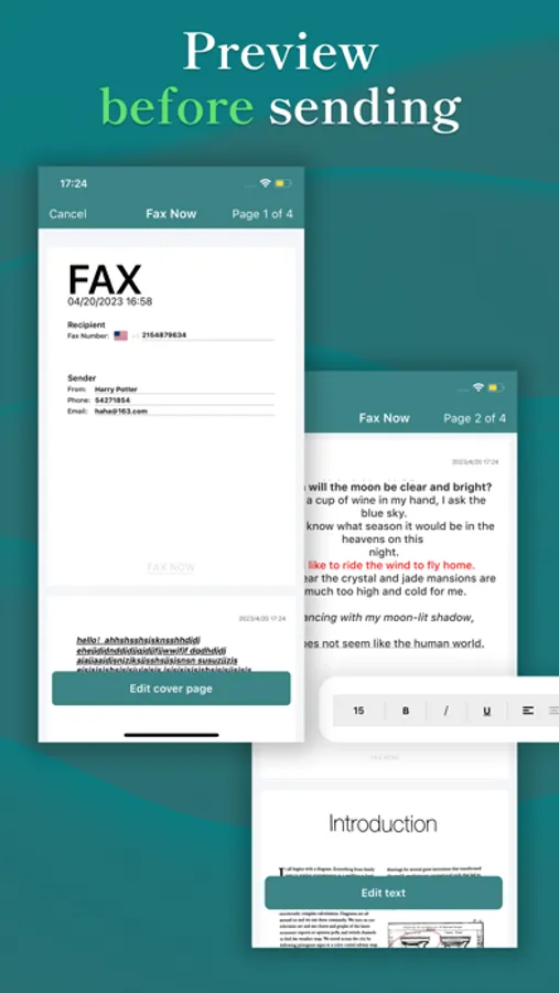 – Any text can be edited to send a fax