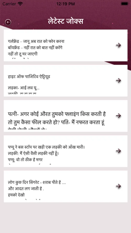 It consists lots of Hindi Jokes with different new categories that you can not find out any other apps.
