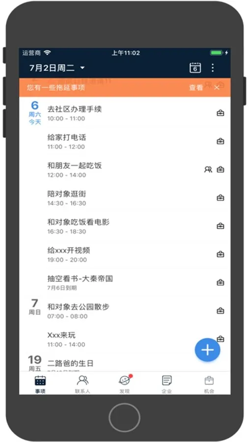 1、日程:所有事项统一记录管理,不会错过任何需要办的事项和备忘录。日、周、月视图以不同的视角自由查看。