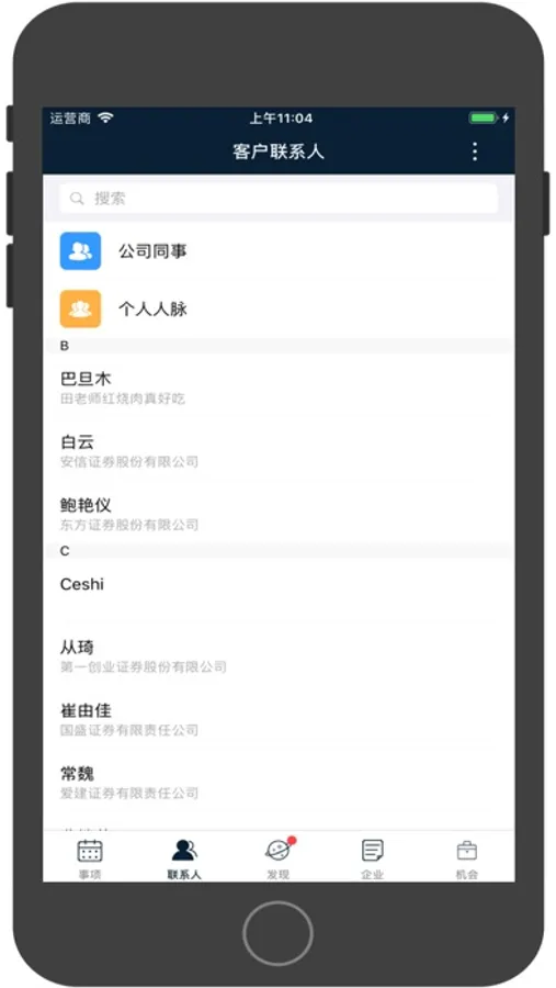 3、联系人:记录丰富详细的联系人资料,把握人脉的每一个细节。