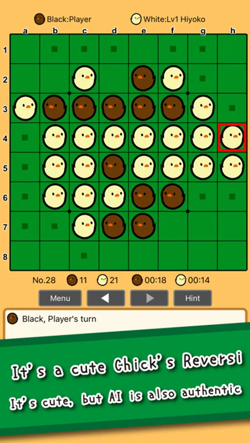 It's a Free Reversi Game. You play with Cute Chicks. ("Piyo" is chick twitter.)