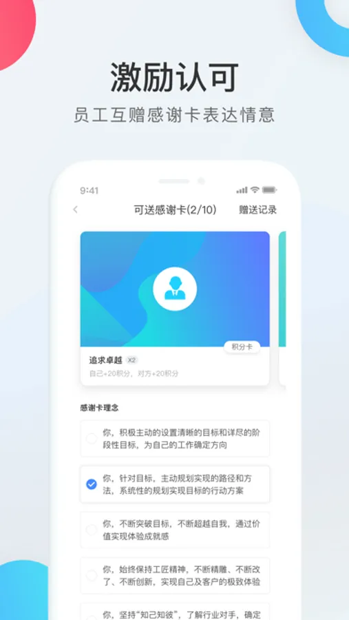 【激励认可】线上感谢卡,同事间可第一时间表达感谢。