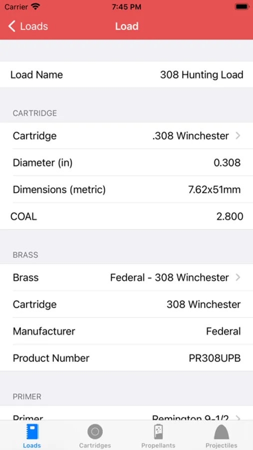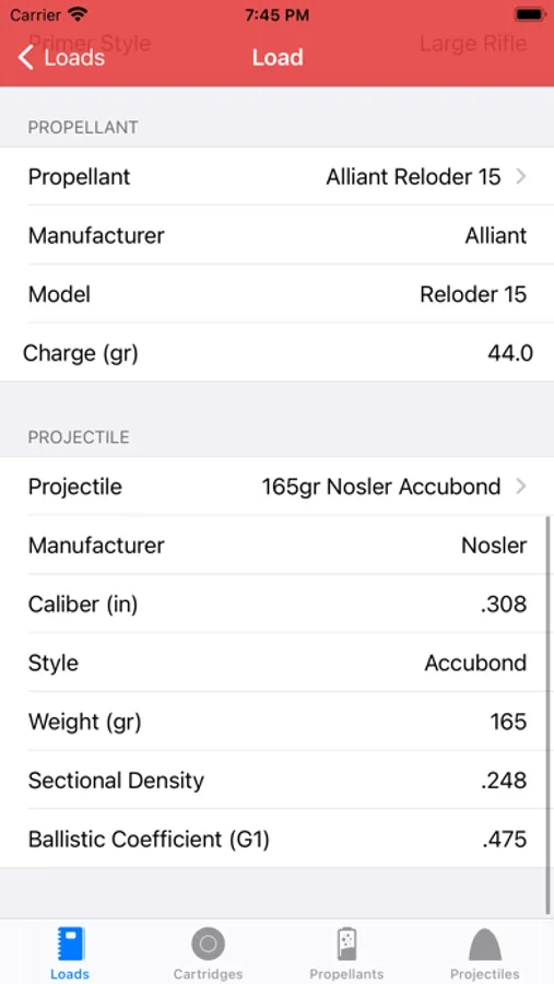 Using our large database comb through various cartridges/brass/primers/powders/projectiles to create the perfect combination for your rifle or handgun. If the combo that you desire is not in the database, create a custom reloading component to fit your application. The large database is easy to navigate with search features, and quick scrolling. Load Data has pre-loaded over 1200 projectiles, 200 cartridges, 400 brass combos, 40 primers, 180 propellants.