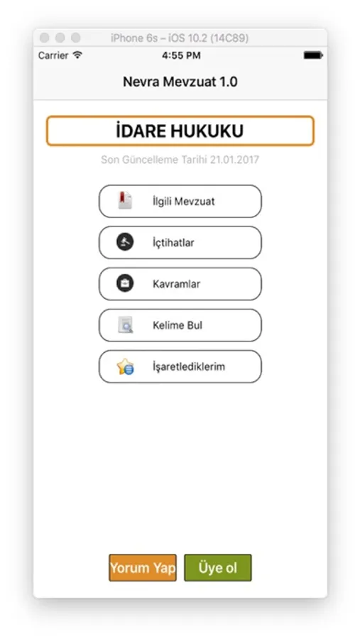 Uygulama içerisinde İdare Hukuku ile ilgili mevzuat, kanun maddeleri ile ilgili içtihatlar da yer almaktadır.