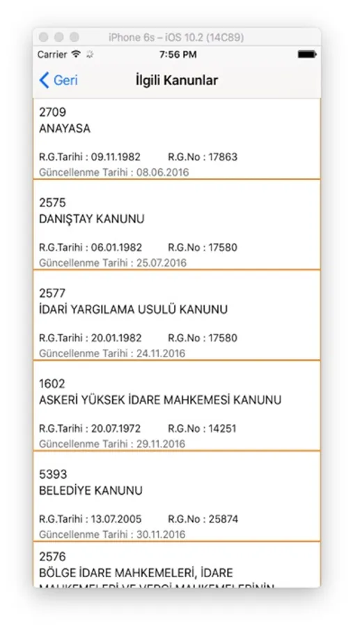 Aşağıdaki kanunlar Uygulamada yer almaktadır.