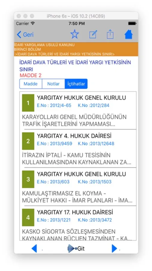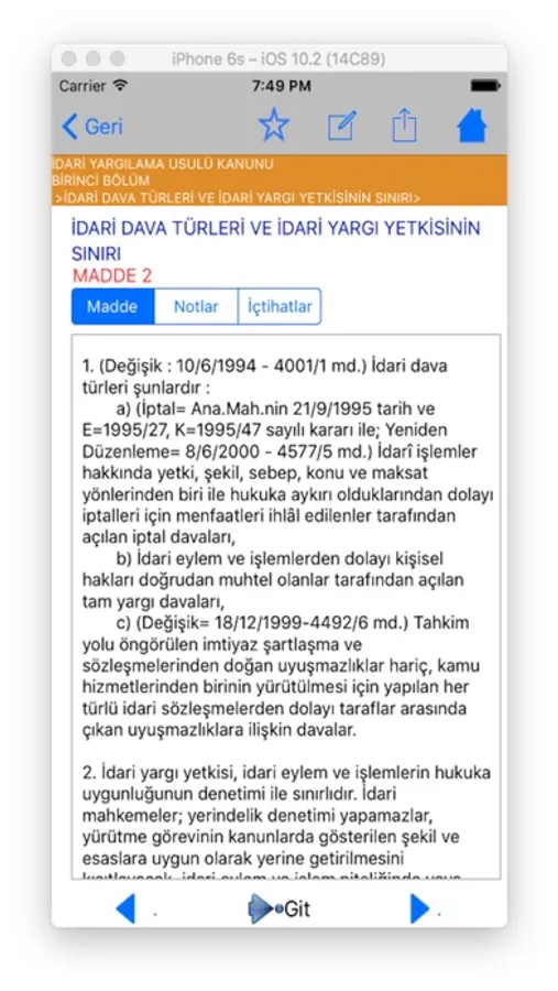 1-Yıldız işaretine basarak Kanun maddesini işaretleyip İşaretlediklerim menüsünden hızlıca ulaşabilirsiniz.