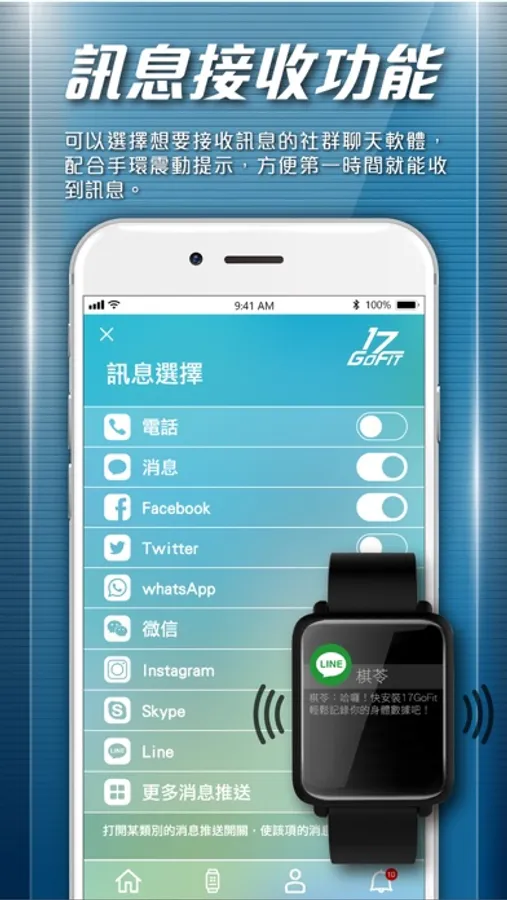 免責聲明:17goFit智能手環及APP提供生理數據採集,以改善健康狀況為目的,不得用於醫療用途和醫療行為。如果您有健康方面問題,建議諮詢專科醫師