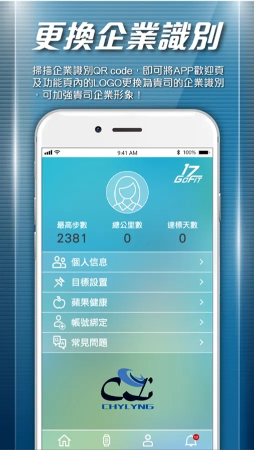 一款專利架構的B2B企業服務下的運動手環APP,能讓團體展示其個別的Logo與歡迎頁面,增加其向心力,此外有許多實用的手環互動功能,包含: