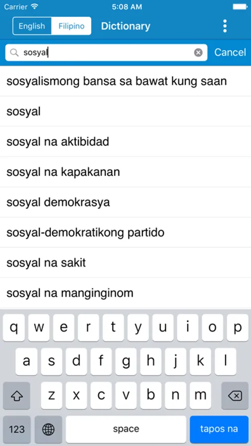 Filipino to English Dictionary: The first feature is that the app serves as a Filipino to English dictionary app where you can find Filipino to English translation of words and their difficult meanings.