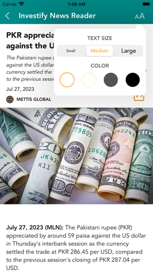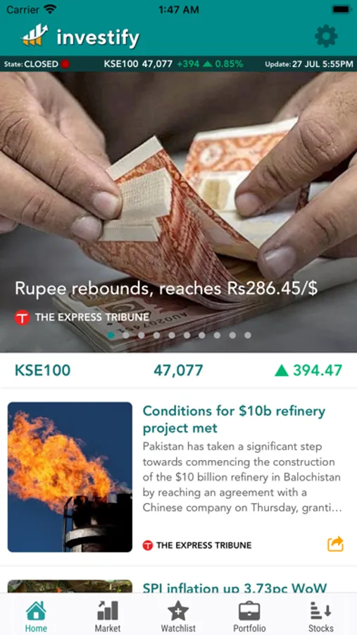 Investify Pakistan Stock Exchange App is the only business news aggregator you need to stay updated. Our sources include Express Tribune, Dawn and Profit Pakistan Today. Our specialized news reader mode allows you to read in a simple, clutter-free layout (Customize font-size and background color)