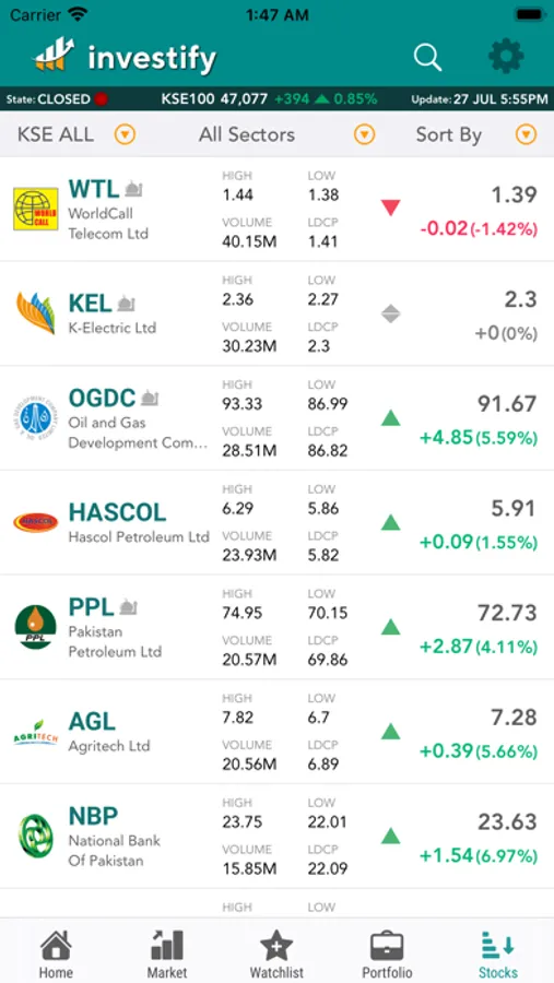 Hundreds of thousands of investors use Investify as their #1 app to track stocks and portfolios for the Pakistan Stock Exchange. Live prices, financials, alerts, business news, demo trading and much more for free.