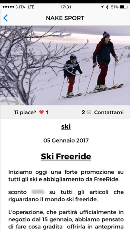 La App "Nake Sport" rappresenta lo strumento più efficace per essere sempre aggiornati sui principali eventi sportivi, le promozioni e le offerte del negozio, tramite foto, video e approfondimenti. Grazie alla personale selezione degli sport preferiti, ricevi solo le informazioni e e le iniziative relative alle tue attività di interesse o ai principali sport trattati da Nake Sport. La App ti permette di conoscere sempre gli orari di apertura del negozio, l'ubicazione e le persone del team. Facile da usare, consente inoltre di fornire le proprie valutazioni alle notizie pubblicate e di contattare direttamente il personale del negozio. Usando la App "Nake Sport" è infine possibile raccogliere i punti per partecipare a programmi premi e sconti.